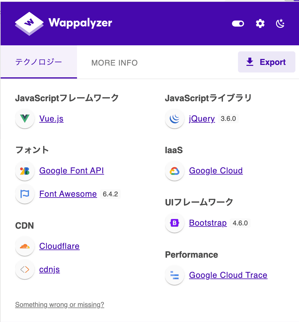使用されている技術に、Vue.jsの痕跡は見受けられないが誤認識である。